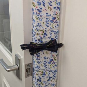 A cosy over door draught excluder for environmentally minded pet lovers who don’t have a solution for letting their pet roam around the house whilst saving heat / energy.